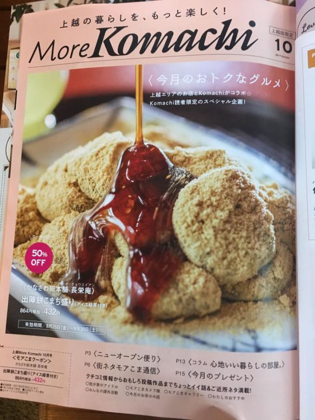 さて、今月号の『Komachi』さんに出陣餅15玉(通常の5個分)と冷たい緑茶が付いた『出陣餅コマチ盛り』が掲載されております。